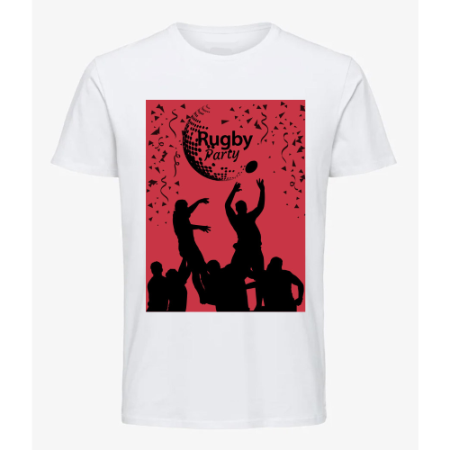 Nuova T-shirt in cotone con stampa frontale T-shirt Rugby Party